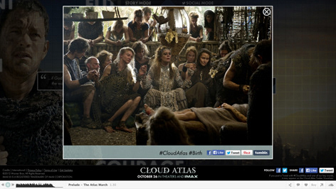 In Story Mode, you could explore the world of CLOUD ATLAS though quotes and images from the film. The ever-changing mosaic evolved with the social conversation to illustrate how the world was connecting in real-time.